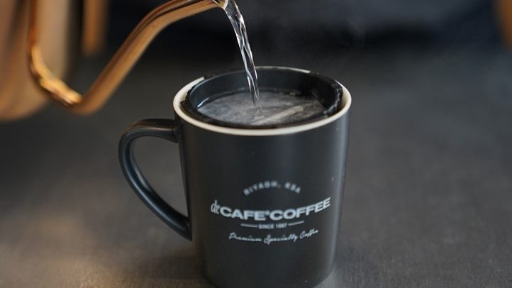 Use some of your hot water to rinse your filter and cap. The water helps the filter adhere to the cap, and heats your brewing vessel or cup.