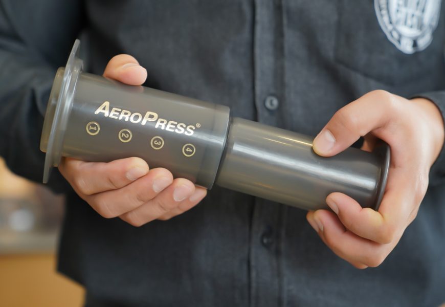 Once you’ve unscrewed the cap, you can pop out the filter and the puck of condensed grounds by simply pushing AeroPress’s interior section a final inch.